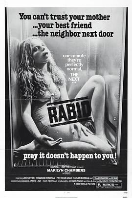 加拿大导演戴维.克罗南伯格执导的本片,主要描写骇人听闻的疯狗病,受传染的人会口吐绿液,双眼发光,并且见人乱咬,几个小时后即不治而亡。美国著名的“性”星玛里琳.查姆伯丝扮演的罗丝小姐幼时曾患过疯狗病,因车祸受伤引起病毒复发,腋下竟然不可思议地长出一个嘴巴,而且内有一个可伸缩自如的肉刺,专用来插到别人身上吸血。于是,她在一个接一个吸别人血的同时,也把疯狗病迅速传播,使城市瞬间成为疯人满布的人间地狱……  影片评价  仅仅就身体变异而言,克隆伯格的独特之处在于处处不忘对色情幻想进行扭曲,无论是《狂犬病》(Rabid)中女主角必须由腋下长出一只阴茎来对其阴道作出支撑,还是《录像带谋杀案》(Videodrome)中男主角长出阴道般的裂口,都是这种扭曲的必然,连录像带的转子,都像双乳一样扭动。《录像带谋杀案》其实还有一个原来设想的结局,就是一男(男主角麦克斯)两女(尼基和卞卡)合体,同时以各自的变异性器官相互绞缠吞噬。在《赤裸的午餐》(Naked lunch)中,那个最终撕开男性外皮露出女体乳房的总裁如果还不够刺激,等你意识到她的装束是女同施虐的标准配备,就会有格外的颤栗。